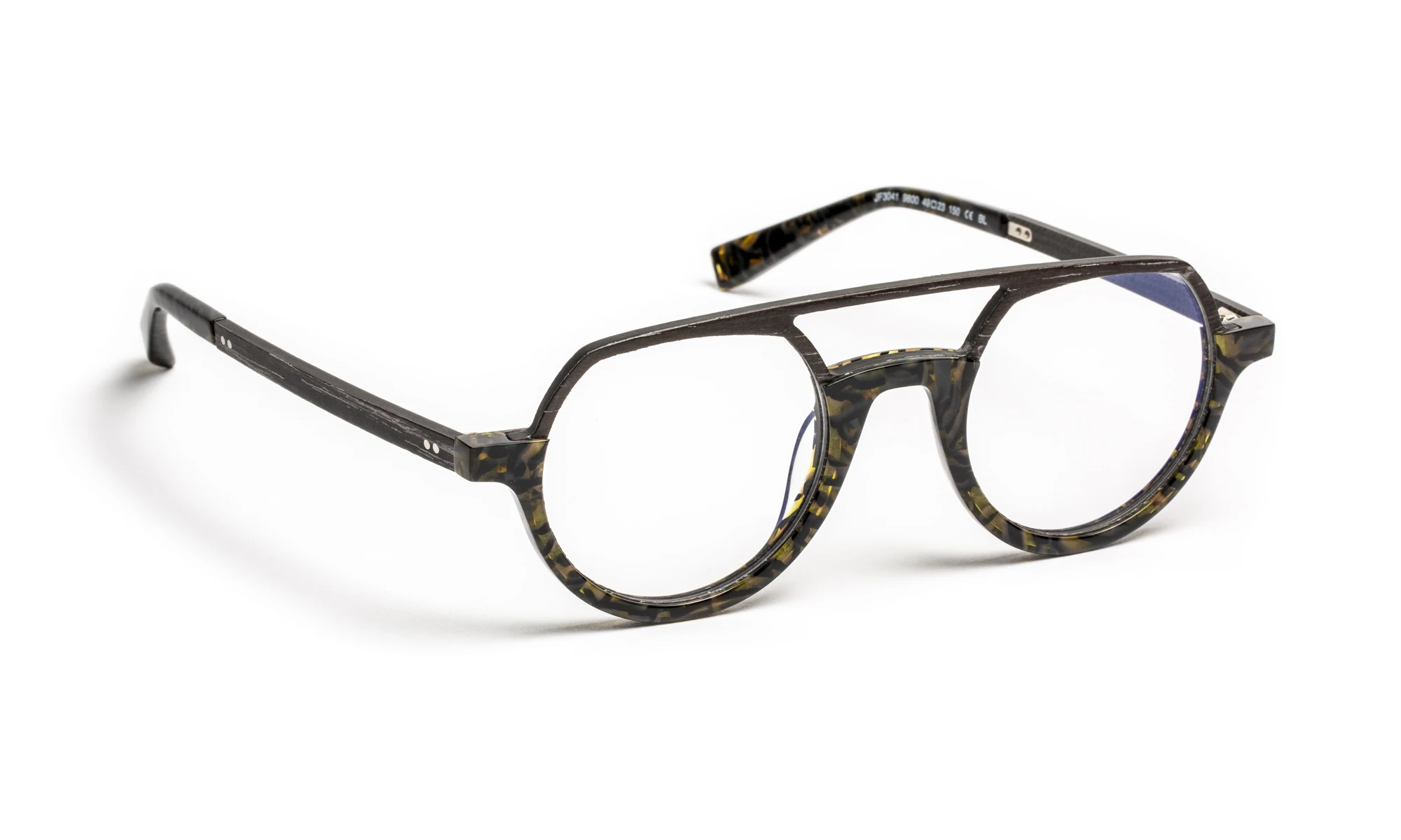 The JF3041 model unveils a design crafted from high-tech materials. The front and temples are made of compressed carbon, which is as durable and lighter than titanium, with decorative elements featuring a raw carbon look, wood veneers, and various colors of acetate. With extreme precision, the finest materials harmonize around carbon in a single frame that is lightweight, elegant, and of high quality.