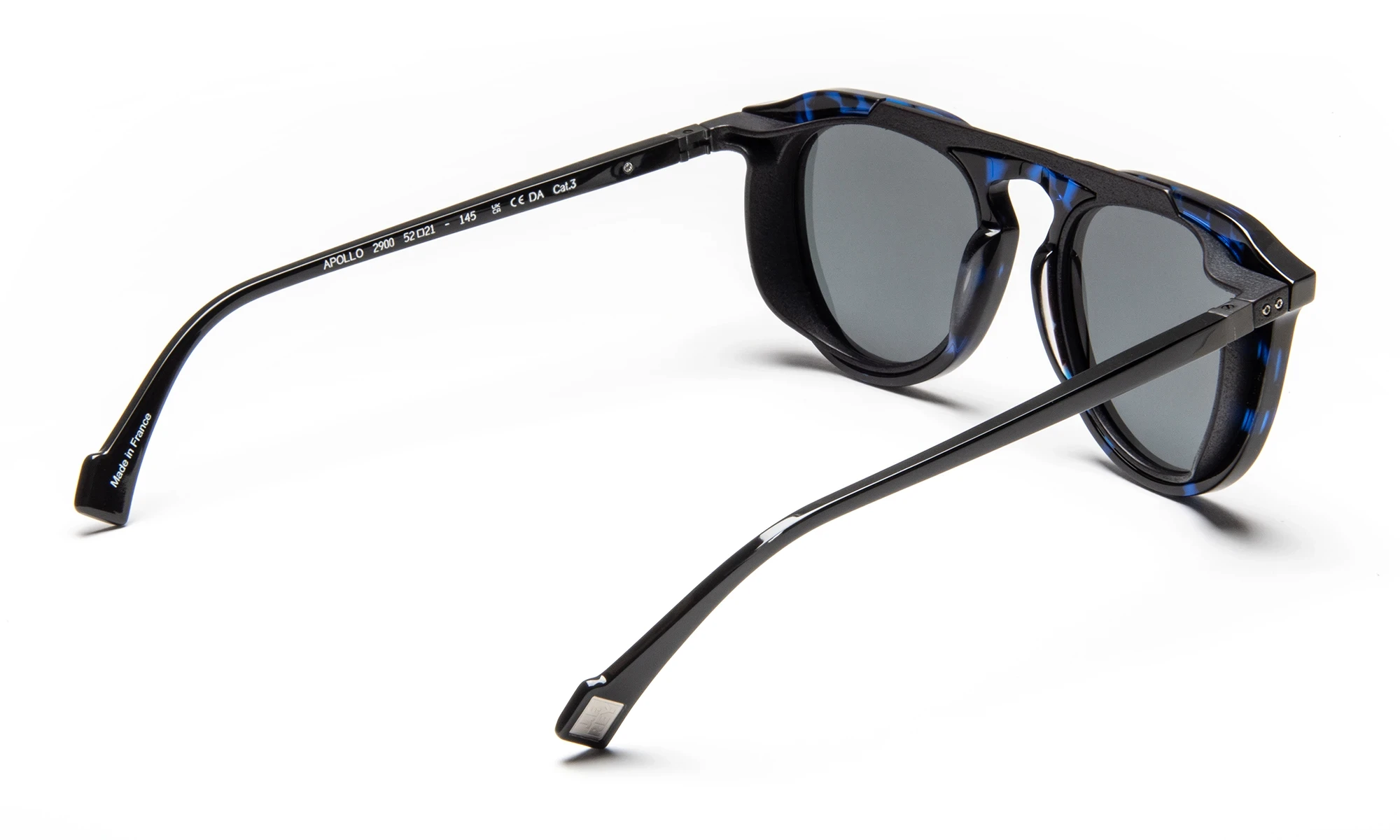 Monture solaire polyvalente et sophistiquée, équipée de verres polarisants pour une protection optimale contre l’éblouissement. Son design hybride et innovant allie l’acétate, apprécié pour sa robustesse et son élégance, à une coque intérieure réalisée en impression 3D, apportant légèreté, style et modernité.