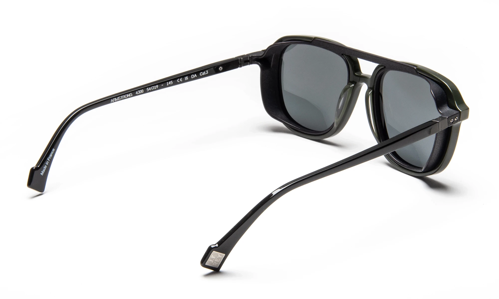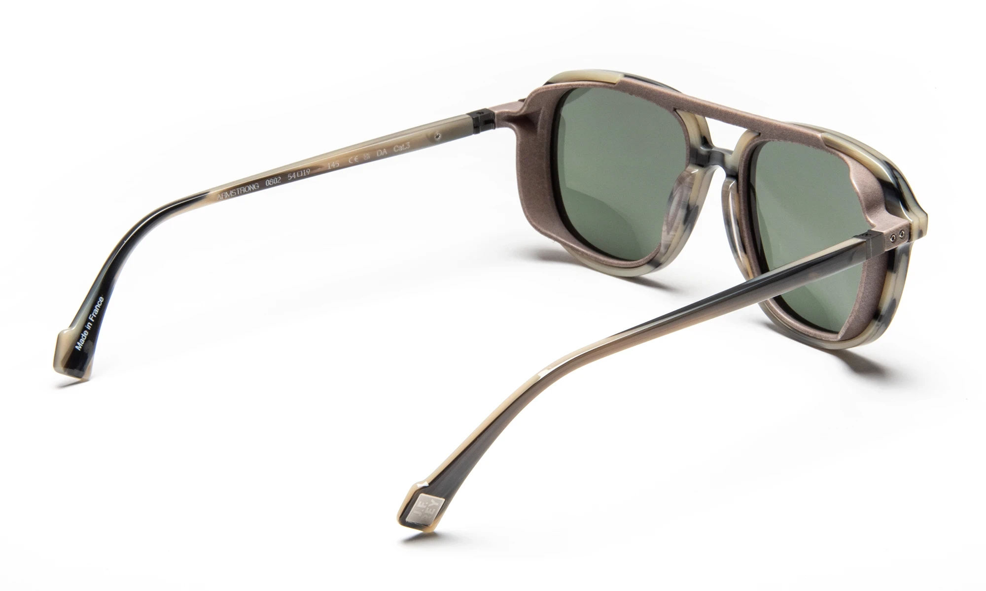 Monture solaire polyvalente et sophistiquée, équipée de verres polarisants pour une protection optimale contre l’éblouissement. Son design hybride et innovant allie l’acétate, apprécié pour sa robustesse et son élégance, à une coque intérieure réalisée en impression 3D, apportant légèreté, style et modernité.