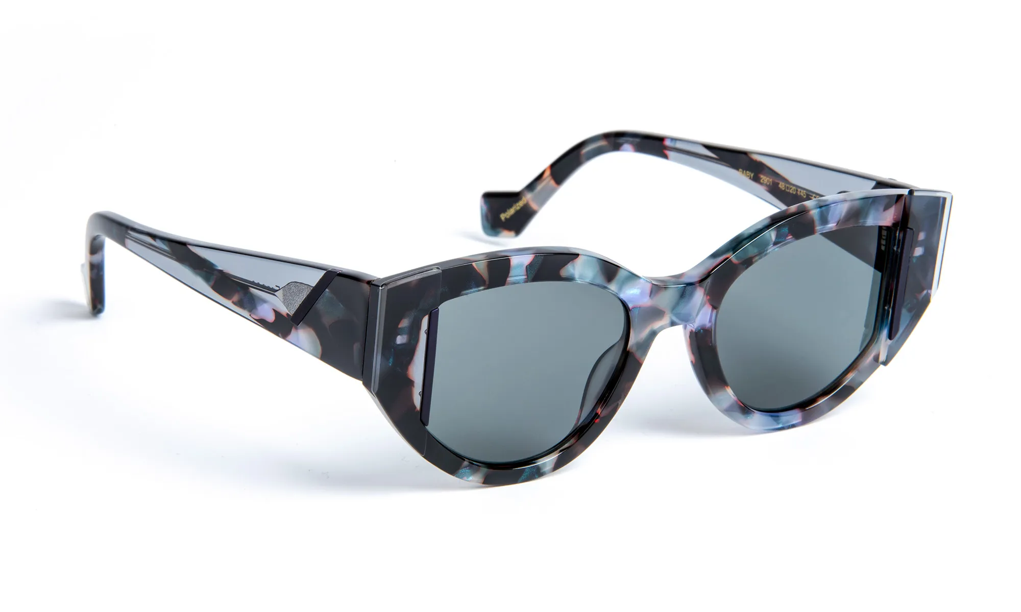 Monture solaire inspirée des formes papillon emblématiques des années 50 et 60, incarnant un design élégant et audacieux. Chaque modèle se distingue par une palette de coloris graphiques et artistiques, mettant en lumière des compositions d’acétates soigneusement sélectionnées pour renforcer le caractère exclusif et unique de chaque création. Face et branches sont sublimées par une barrette métallique aux reflets satinés, une signature visuelle intemporelle raffinée et sophistiqué.