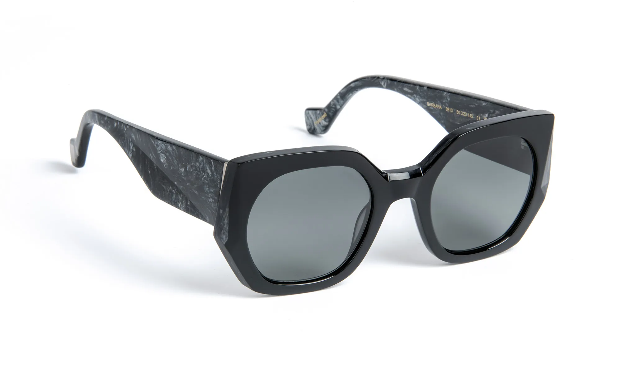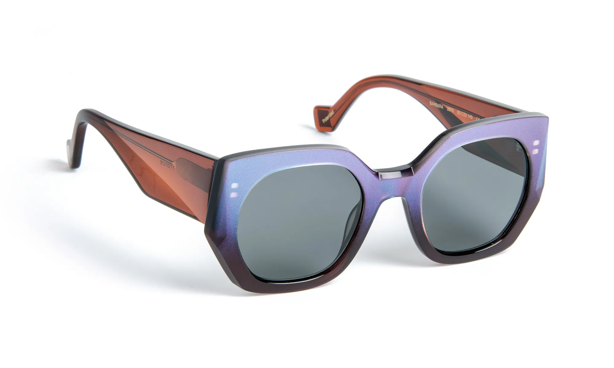 Monture solaire en acétate, au design raffiné sublimé par une finition facettée entièrement façonnée à la main. Ses branches larges, sculptées en creux, apportent des reflets subtils et ajoutent une touche de modernité. Le style se distingue par une palette de coloris en dégradés irisés, offrant des jeux de lumière et des nuances changeantes qui scintillent sur la face de la monture.