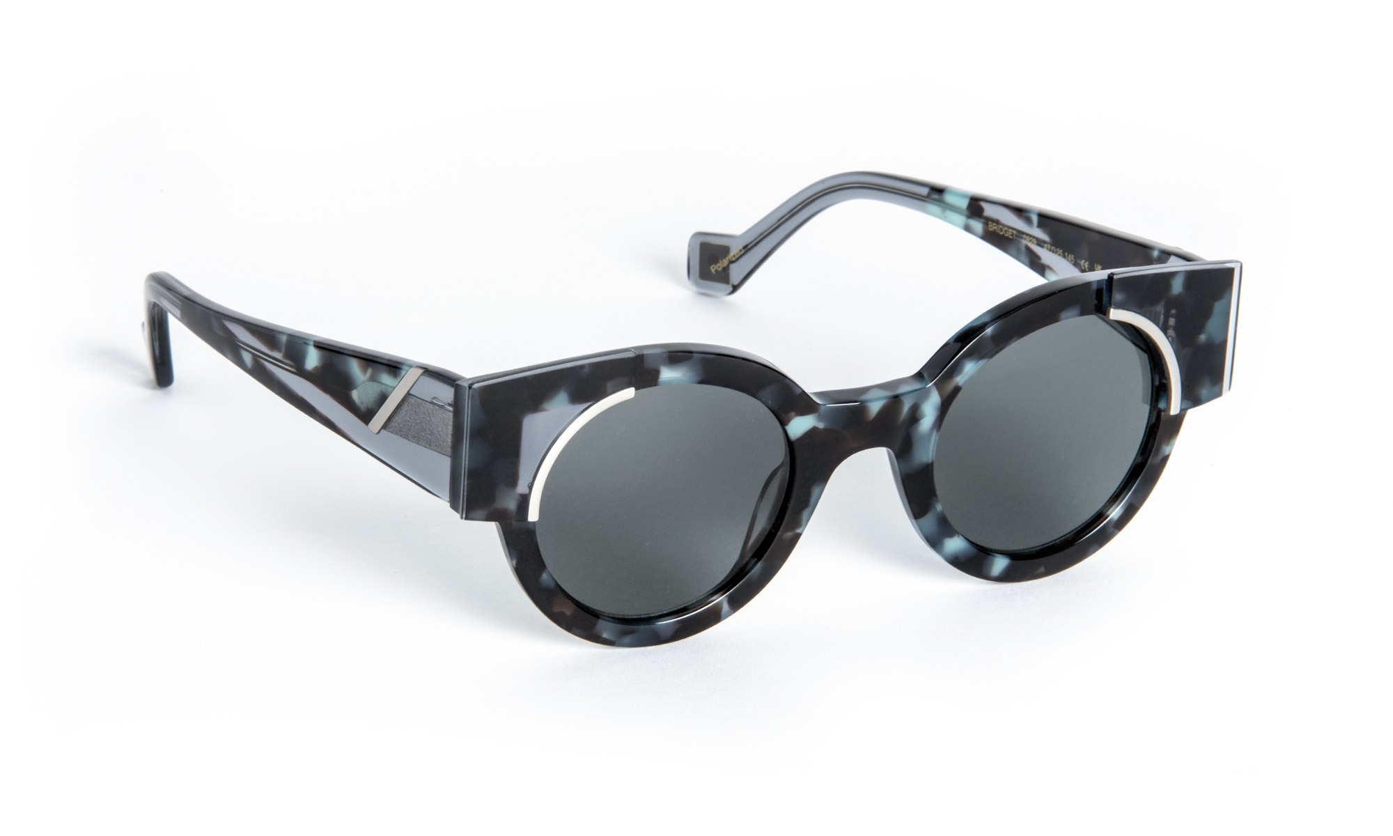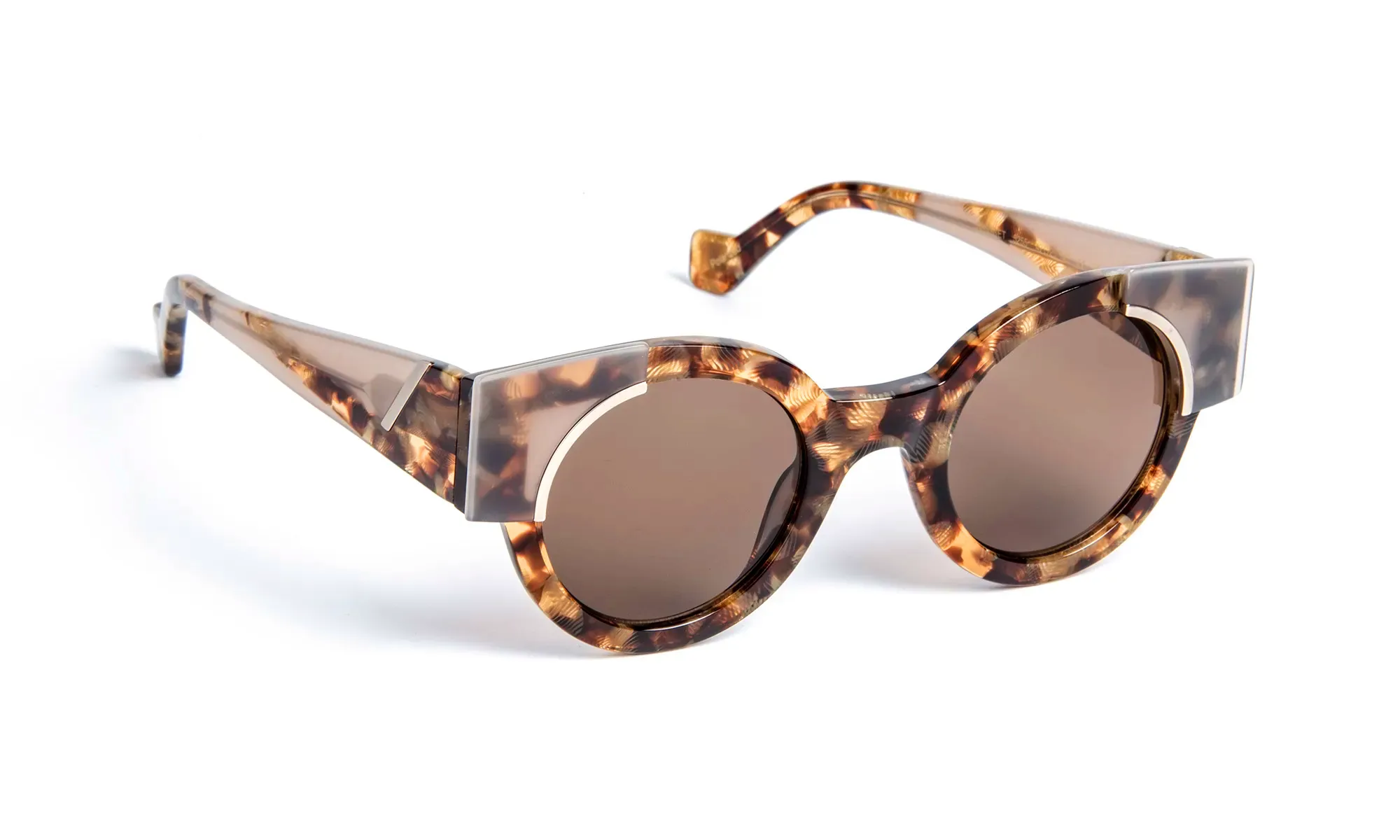 Cette monture solaire de forme ronde se distingue par l’épaisseur de la matière et une décoration subtilement travaillée dans les angles. Les coloris graphiques et artistiques mettent en lumière des compositions d’acétates soigneusement sélectionnées, soulignant le caractère exclusif et unique de chaque création. La face et les branches sont sublimées par une barrette métallique aux reflets satinés, une signature visuelle intemporelle alliant raffinement et sophistication.