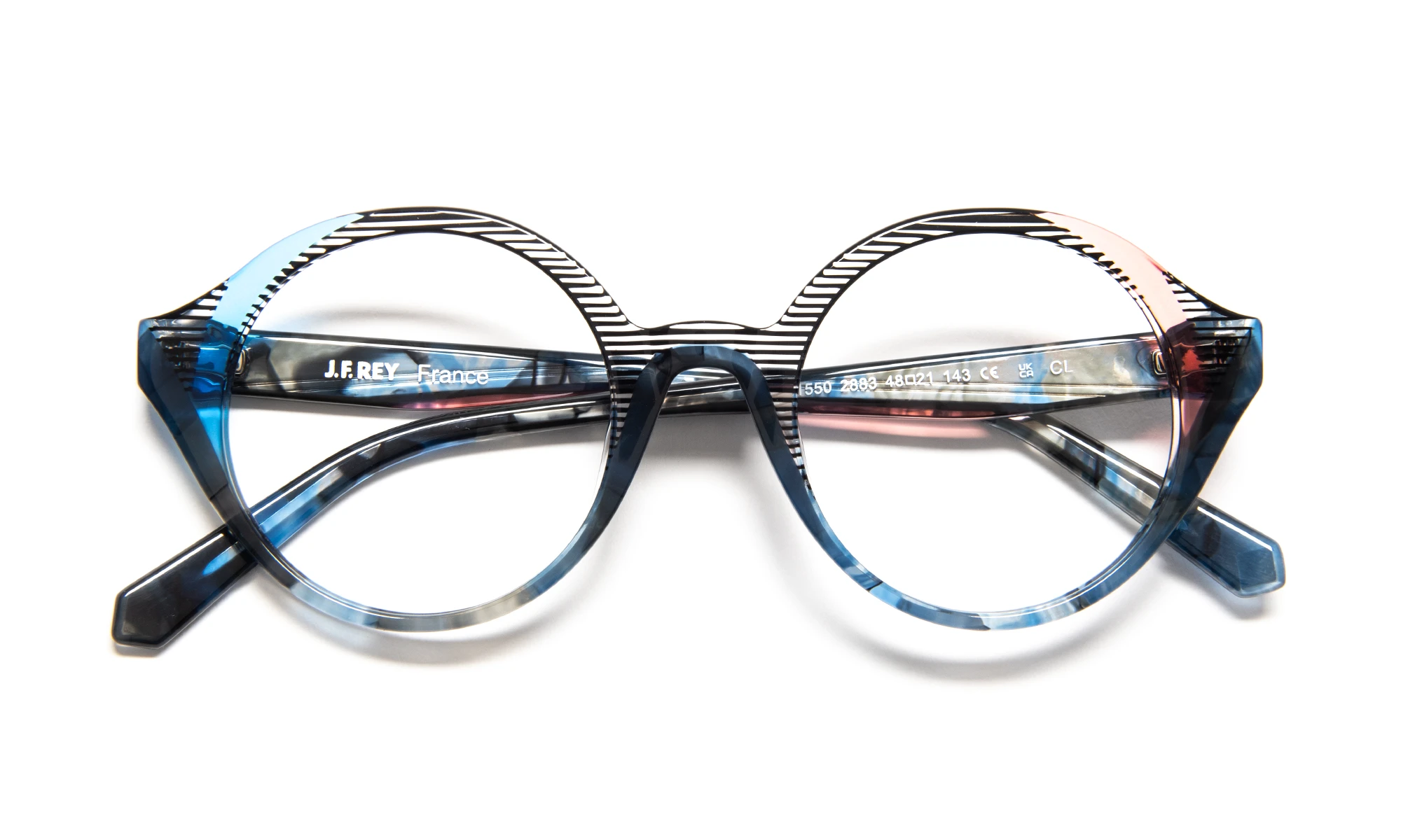 Monture en acétate face et branches. Un design de caractère où couleurs et fantaisies géométriques se rencontrent pour un créer un style contemporain. Les teintes vives et unies se marient harmonieusement avec des motifs patchwork et des nuances dégradées, entre dynamisme et élégance.